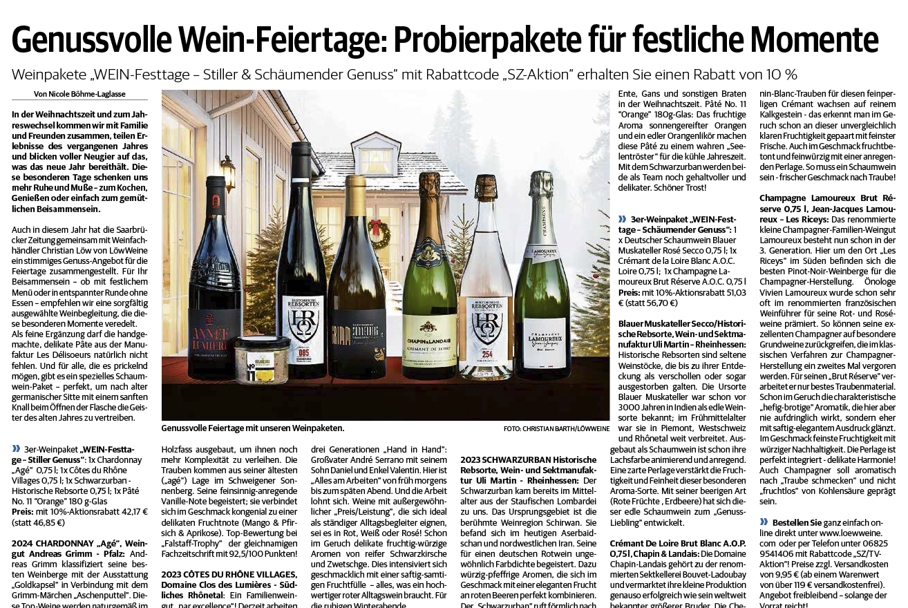 SZ/TV-3er-Probierpaket „WEIN-Festtage - Stiller Genuss & 1x Pâté"